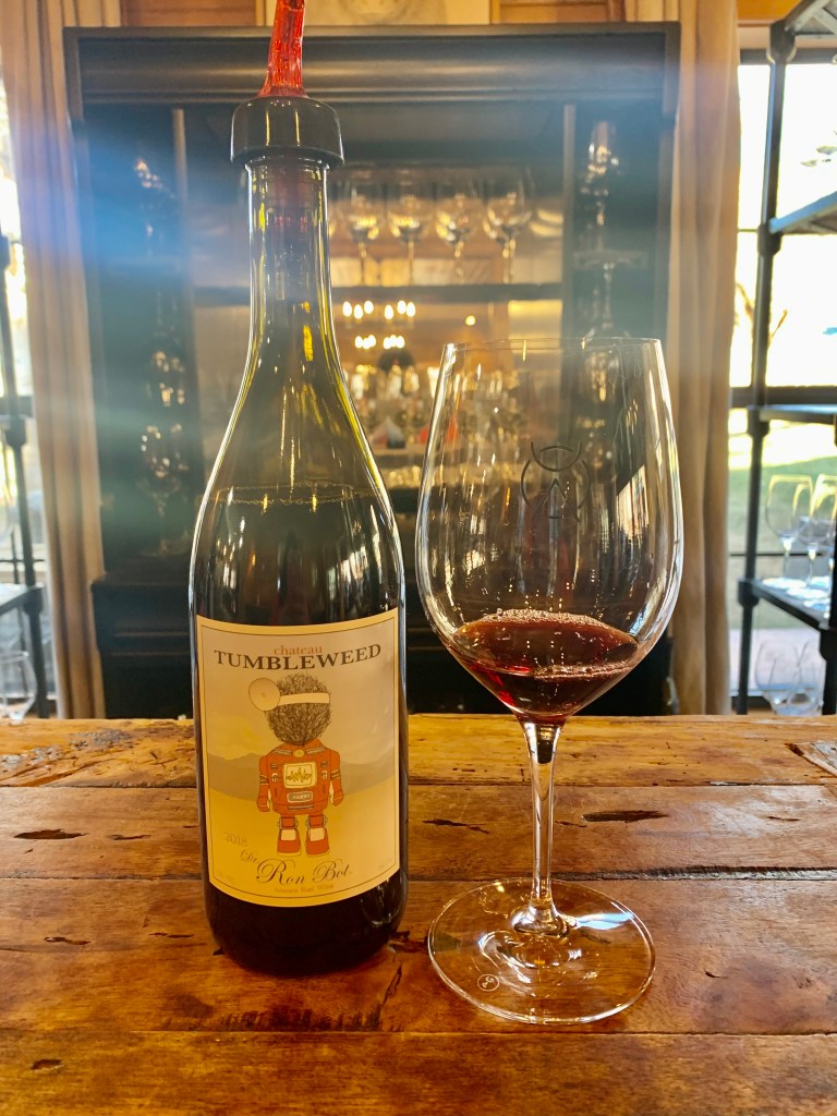 Here, I learned that a lot of Sedona wineries actually source their grapes from Wilcox, AZ. Wilcox is one hour east of Tuscon and produces 74% of the grapes grown in the state! It, too, has a high dessert elevation, diurnal shift, and mountains to protect the area from harsh weather. All this is ideal for grape growing. The Sedona area’s Verde Valley AVA also grows grapes, and DA Ranch has planted some Syrah, Cabernet Sauvignon, Petit Sirah, and Tannat on their property, but not even close to as much as in the Wlcox AVA. Due to the limited amount of their own wines available they also showcase Chateau Tumbleweed wines. I tasted “Dr. Ron Bot”, a Grenache, Syrah, Mourvedre blend and, what I especially liked, their “Willy”, a red blend of Grenache, Syrah, and Tempranillo. I bought a bottle to take home.